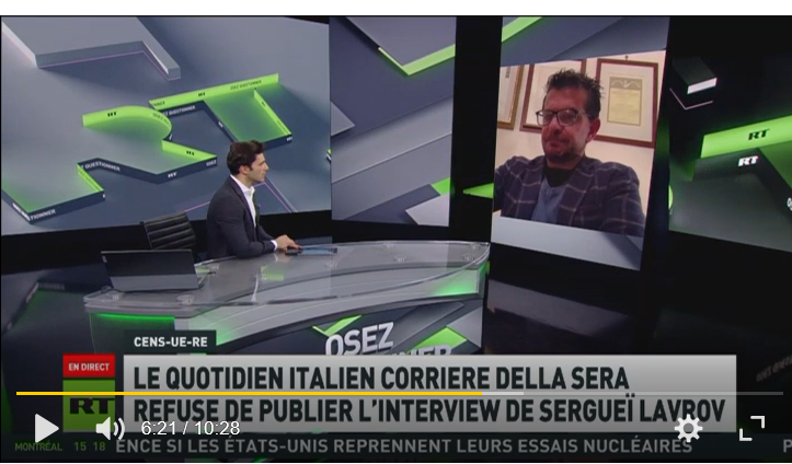 Ciro Perrelli, expert de droit pénal et international et observateur géopolitique, intervient en direct sur le cas de l’interview de Sergej Lavrov et le quotidien italien Corriere della Sera…